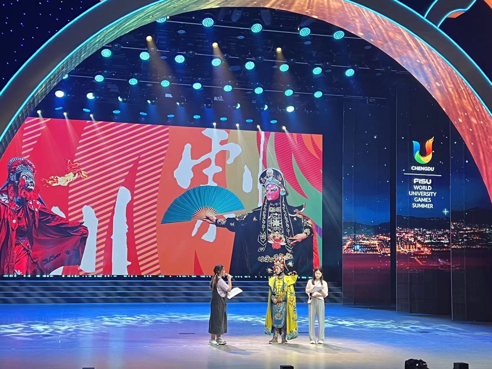 运动员联欢会的主题为“文明因交流而多彩,文明因互鉴而丰富”,以国风、民乐、川江号子、武术、说唱等多元艺术形式,呈现传统与现代、东方与西方的文明对话交流。林芝伊同学近距离接触并且向川剧传承人学习了相关的川剧知识,了解到变脸、水袖只是川剧绝活中的一部分,除此之外还有喷火、踢慧眼、滚灯、耍扇子等等,数不胜数。