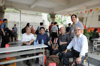 白发苍苍的校友灿烂的笑脸 同窗再相聚