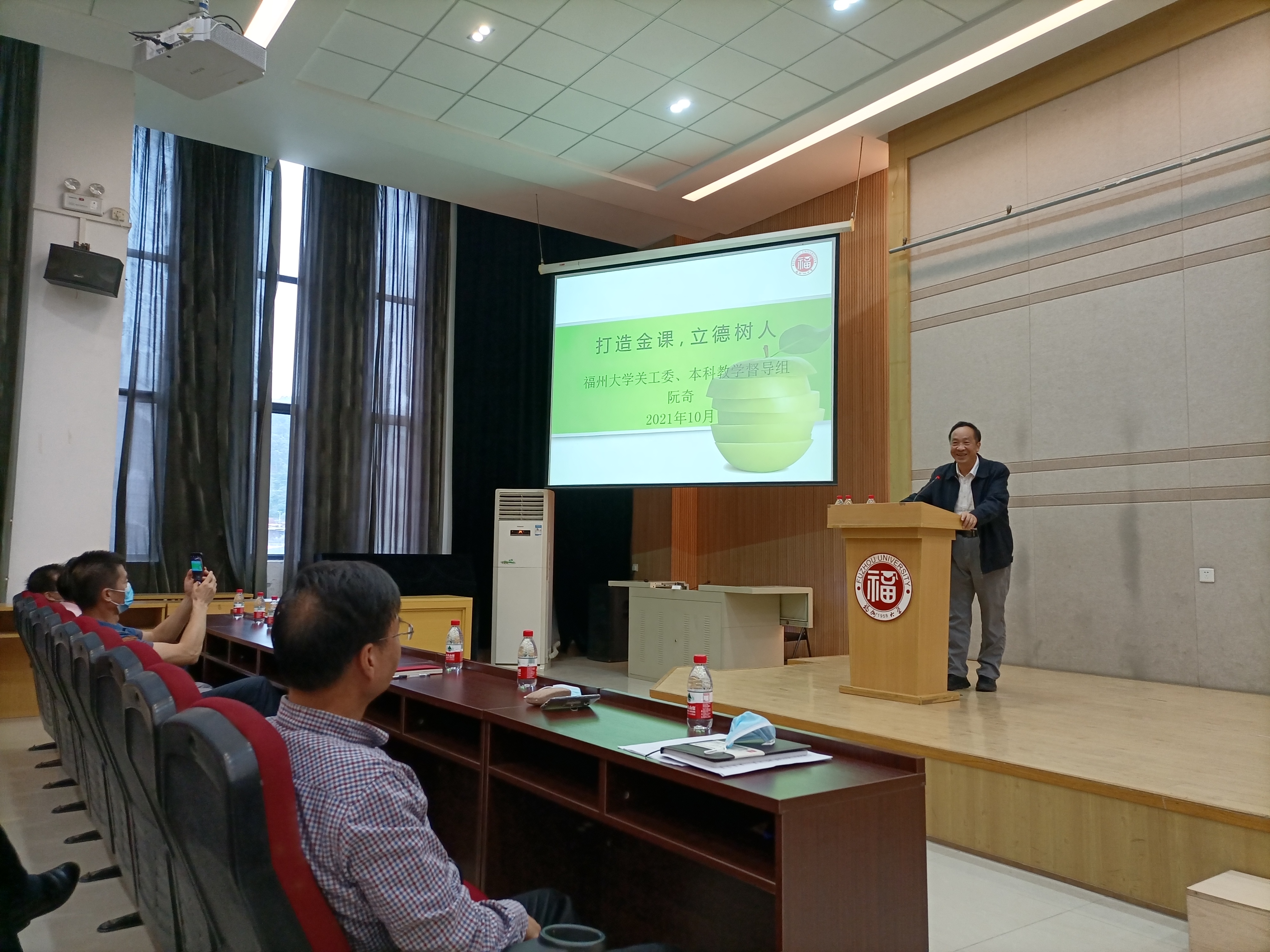 2021年10月21日下午,学院党委邀请威尼斯37266官网关工委、本科教学督导组成员阮奇教授来学院作《打造金课 立德树人》专题讲座。学院党委李礼建书记主持讲座,学院党政领导及全体教职工参加了讲座。